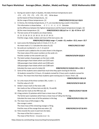 Mean, Median, Mode and Range -- Sorted Sets (Sets of 5 ... - Math-Drills Students can use math worksheets to master a math skill through practice, in a study group or for peer tutoring. Use the buttons below to print, open, or download the PDF version of the Mean, Median, Mode and Range -- Sorted Sets (Sets of 5 from 10 to 99) (A) math worksheet. The size of the PDF file is 35070 bytes.